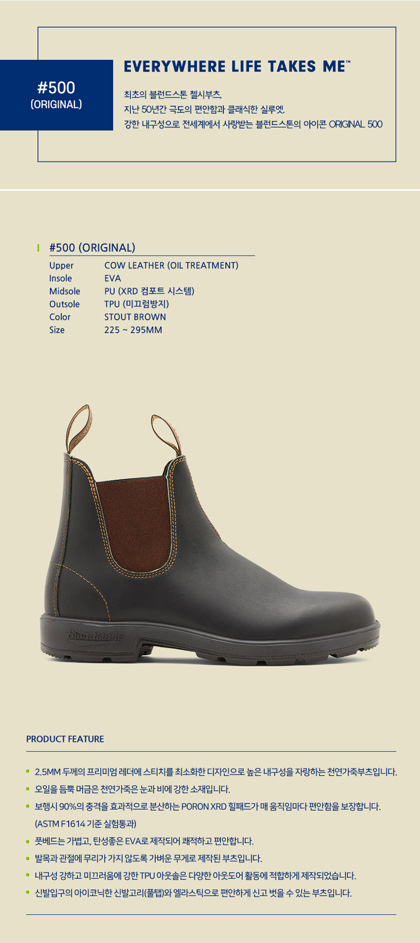 강한 내구성으로 전세계에서 사랑받는 블런드스톤의 아이콘 ORIGINAL 500