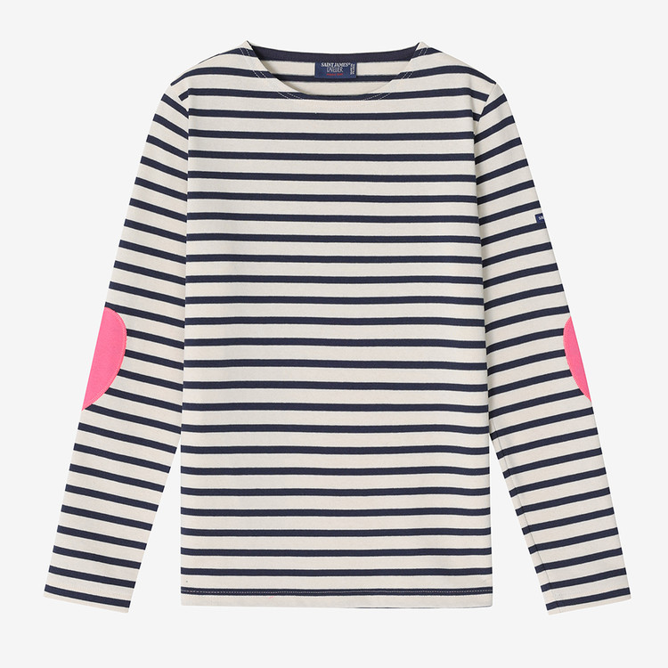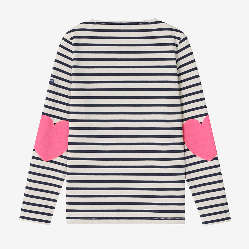 - 팔꿈치에 하트모양 패치가 붙어있다.