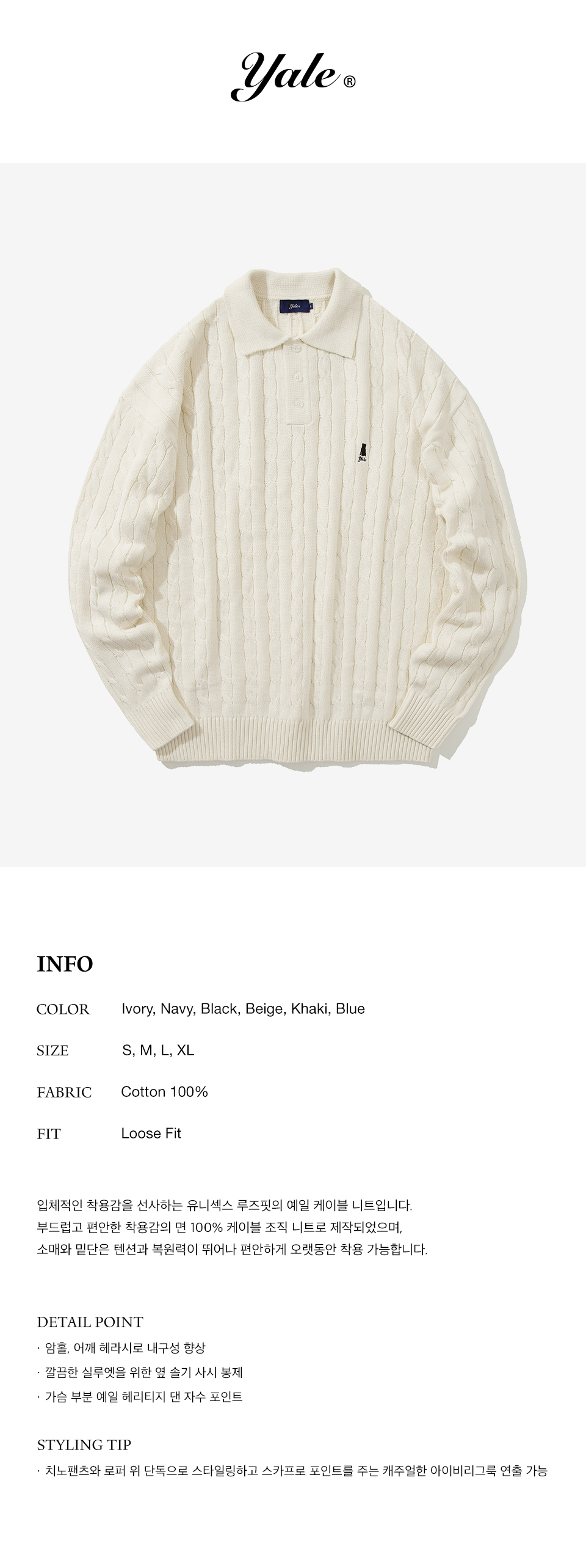 케이블 폴로 니트_아이보리