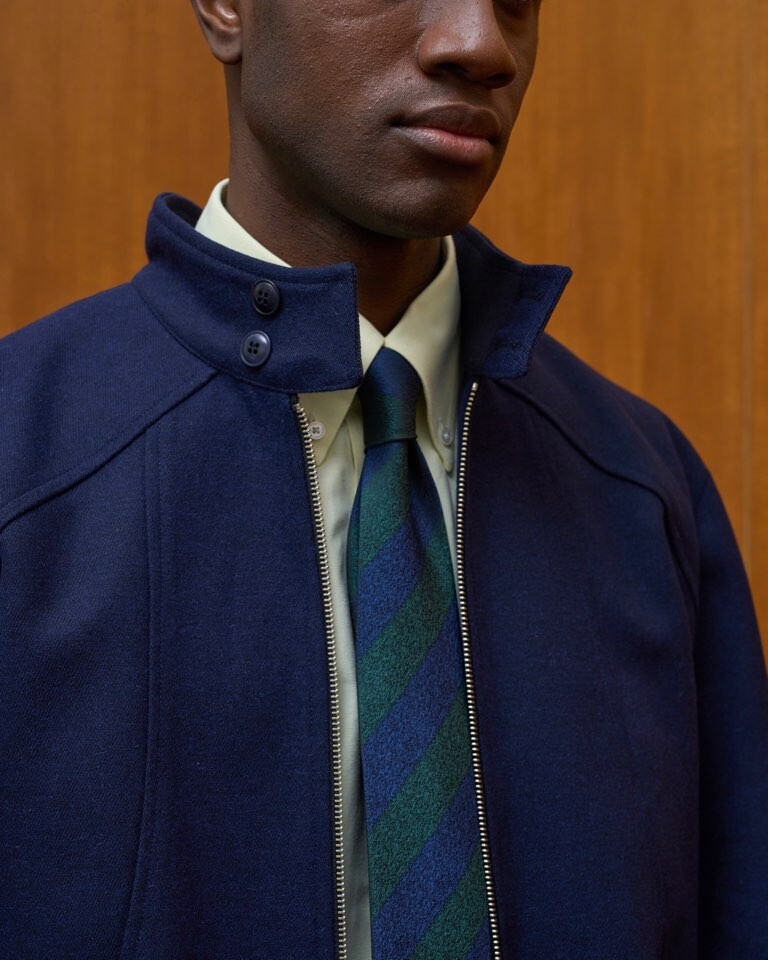 아메리칸 클래식&트레드라 불리는 ‘헤링턴 재킷’을 변형한 재킷입니다. 헤링턴 재킷 전통의 디테일인 RIB 시보리, 스탠드 칼라, 2 Way 지퍼 등은 동일하게 가져오되 타탄체크 안감이 아닌 아가일 패턴으로, 플랩포켓이 아닌 곡선 디자인을 포함하였습니다. 또한, 래글런 소매가 아닌 요크와 내추럴 소매를 결합하여 테일러드한 헤링턴 재킷을 연출하였습니다. 아메리칸 클래식과 현대의 스포티함 함께 만나보세요.